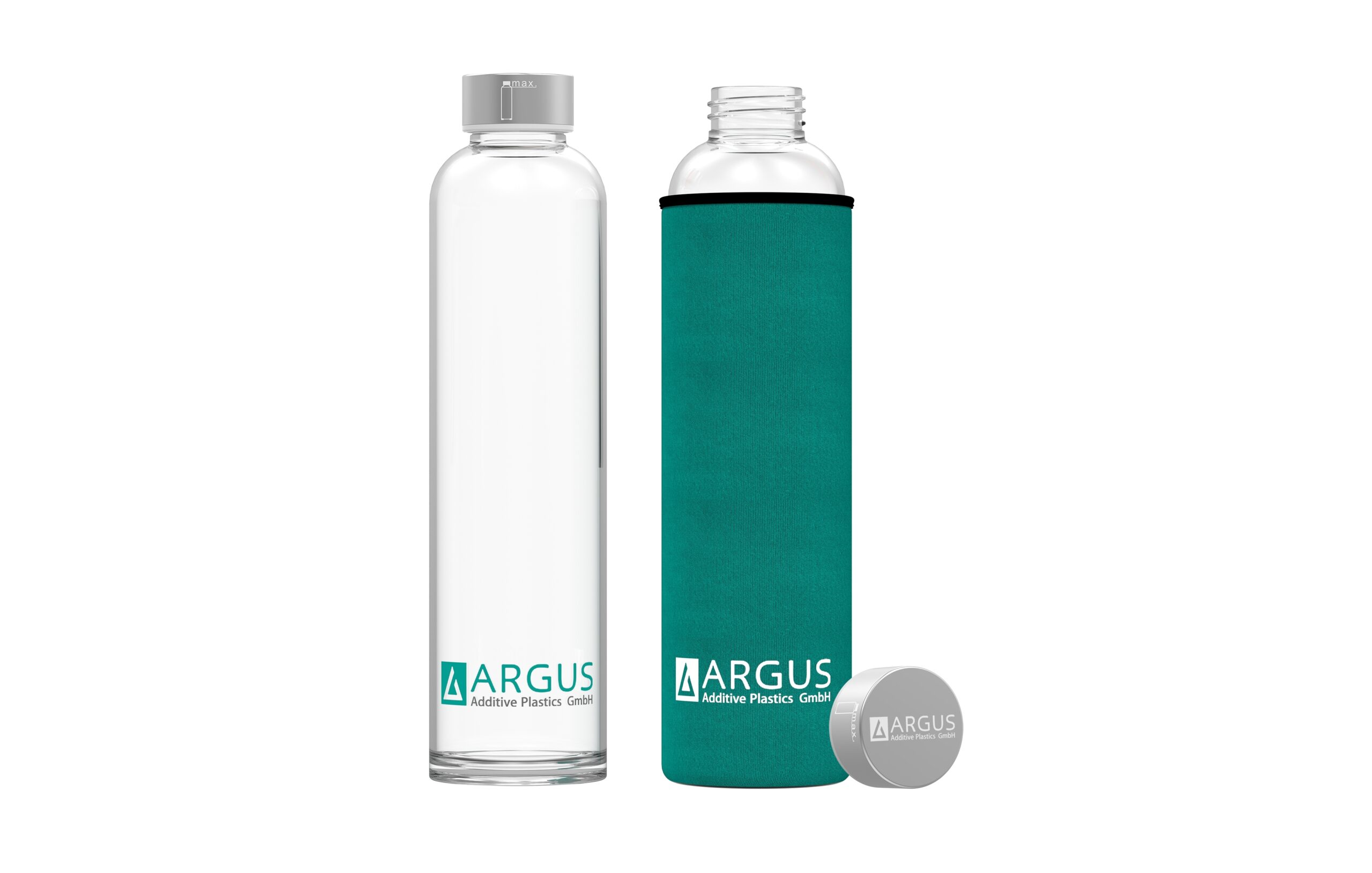 ARGUS Trinkflasche aus Glas #varinfo Trinkflasche aus Borosilikatglas mit verstärktem Glasboden. Geeignet für Getränke mit Kohlensäure. Kälte- und hitzebeständig. Spülmaschinenfest. Abmessungen der Glasflasche: 27 x 7cm | Deckel: Außen- & Innenseite aus rostfreiem Edelstahl (18/8) mit passgenauem Silikon-Dichtring (LFGB-zertifiziert) | Verpackung: Mit Kartonverpackung je Flasche. Logo-Lasergravur auf dem Deckel und Siebdruck auf der Flasche Schutzhülle aus Neopren mit Trageschlaufe Elastische und strapazierfähige Schutzhülle aus hochwertigem Neopren. Materialstärke über 3mm. Doppelt verstärkte Nähte für eine lange Haltbarkeit. Praktische Trageschlaufe für einen einfachen Transport